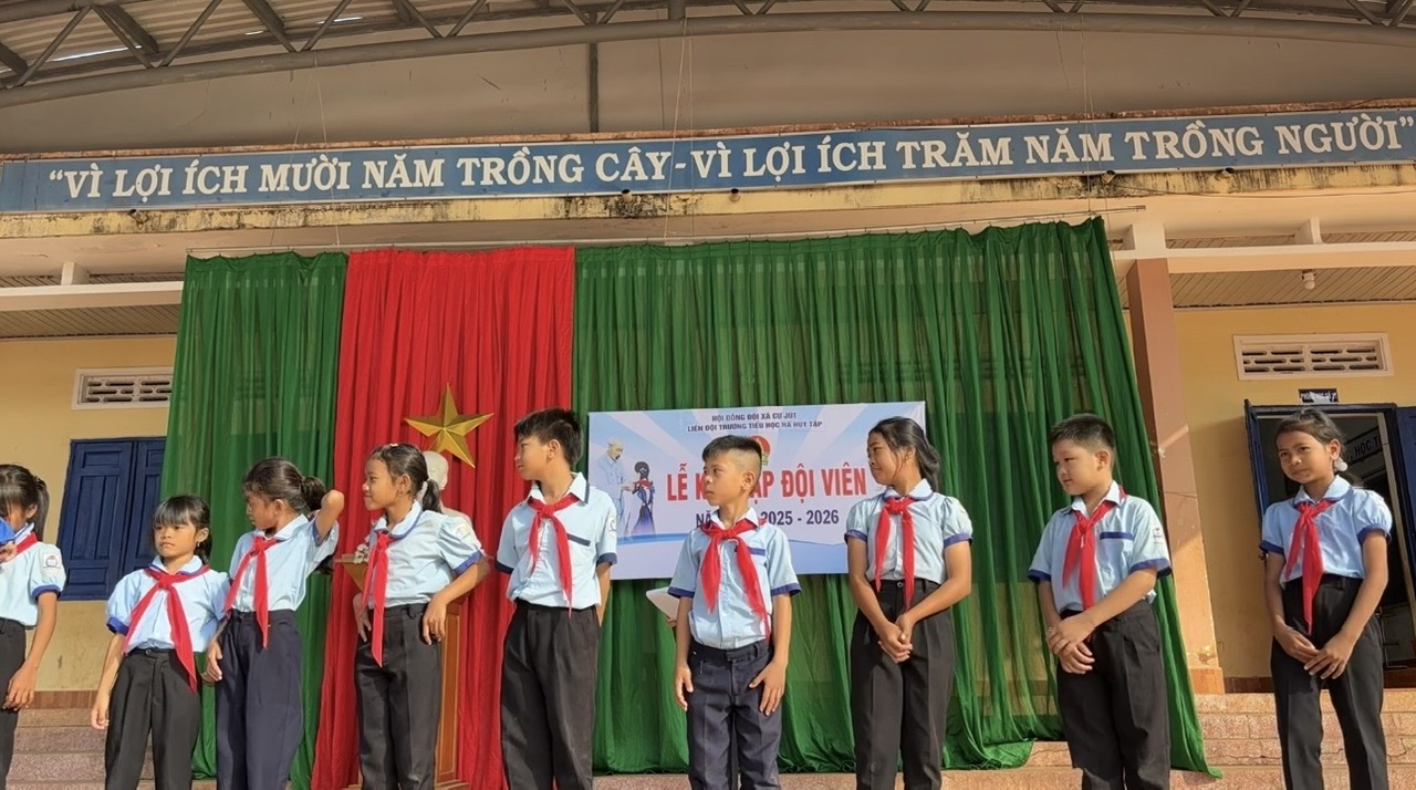 Thực hiện chương trình công tác Đội và phong trào thiếu nhi năm học 2025 – 2026, được sự nhất trí của Ban Giám hiệu nhà trường, Chiều ngày 26/3/2026, Liên đội Trường Tiểu học Hà Huy Tập đã long trọng tổ chức Lễ kết nạp Đội viên mới cho các em học sinh khối lớp 3.