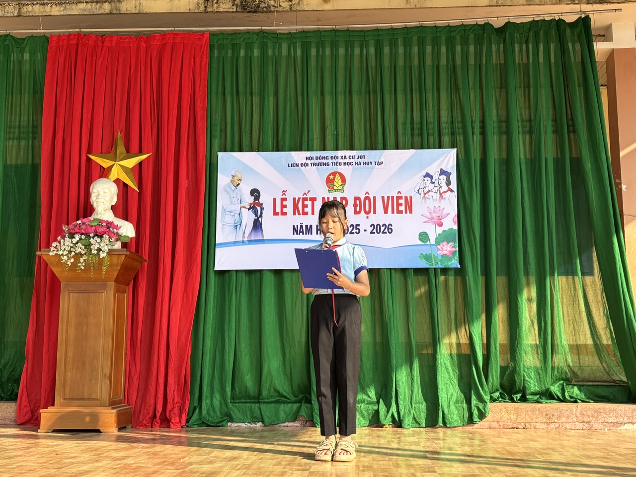 Nghi thức đeo khăn quàng đỏ được thực hiện trong không khí trang trọng, ý nghĩa. Chiếc khăn quàng đỏ – biểu tượng của Đội TNTP Hồ Chí Minh – khi được thắt lên vai đã trở thành niềm tự hào, là động lực để các em tiếp tục phấn đấu, học tập và rèn luyện.