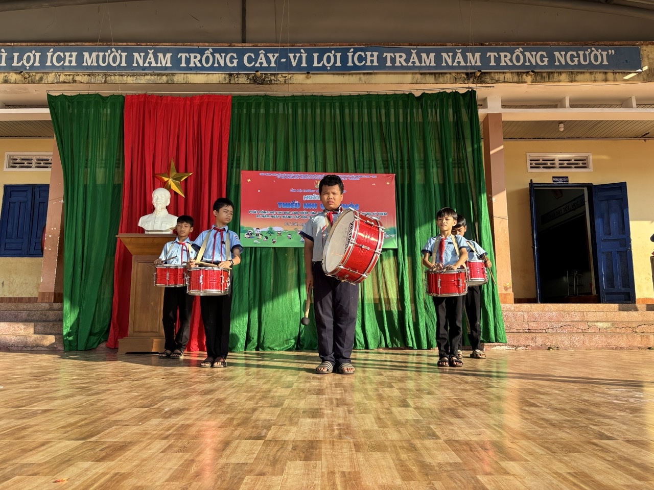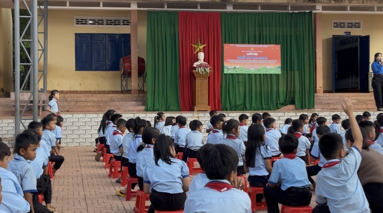 Bên cạnh đó, chương trình còn tổ chức phần giao lưu trả lời câu hỏi – nhận quà, tạo sân chơi vui tươi, bổ ích, giúp các em củng cố kiến thức về Đội, về Bác Hồ kính yêu cũng như các hiểu biết xã hội. Các em học sinh đã tham gia sôi nổi, hào hứng và thể hiện sự tự tin, nhanh nhẹn của mình.