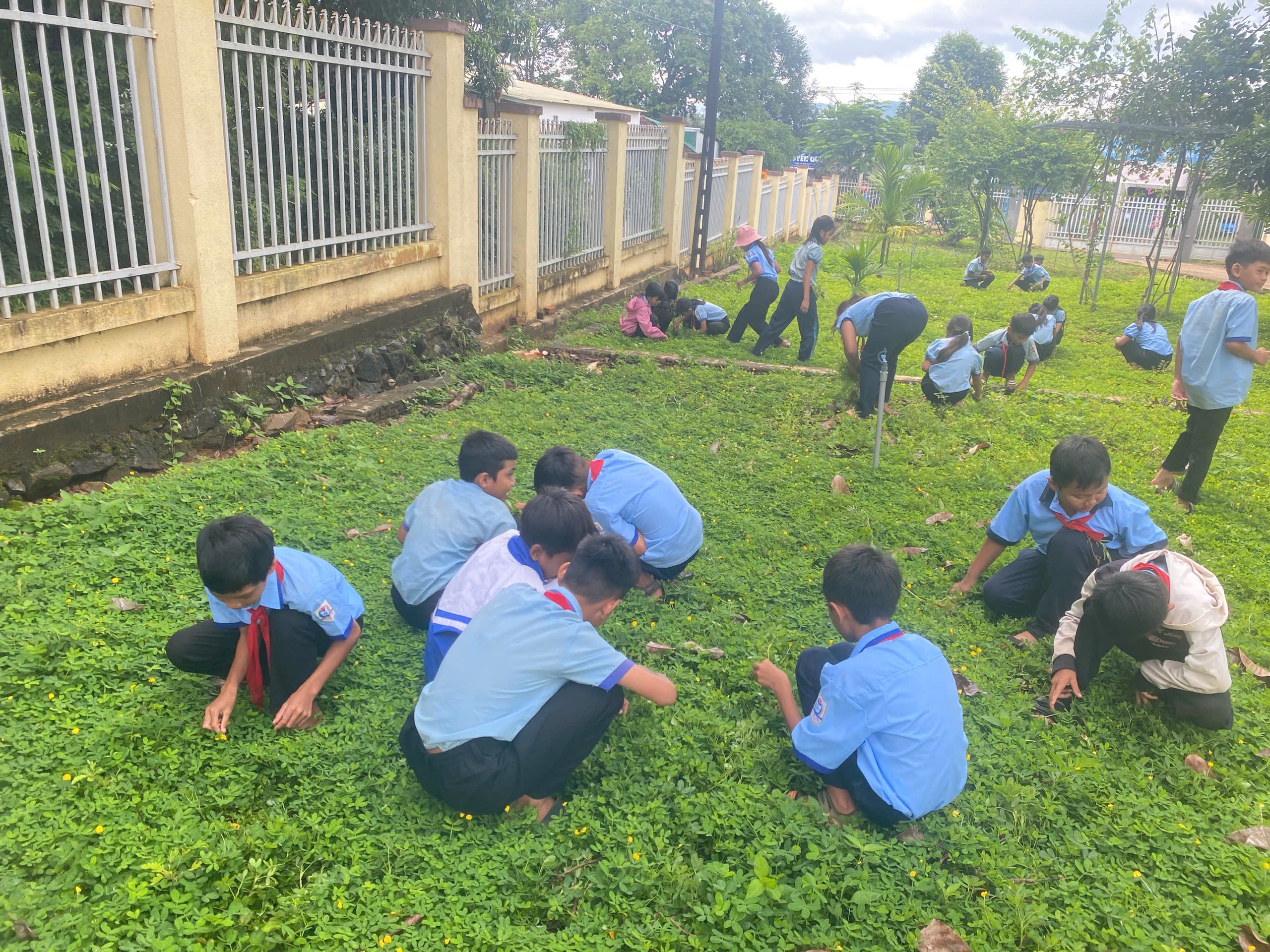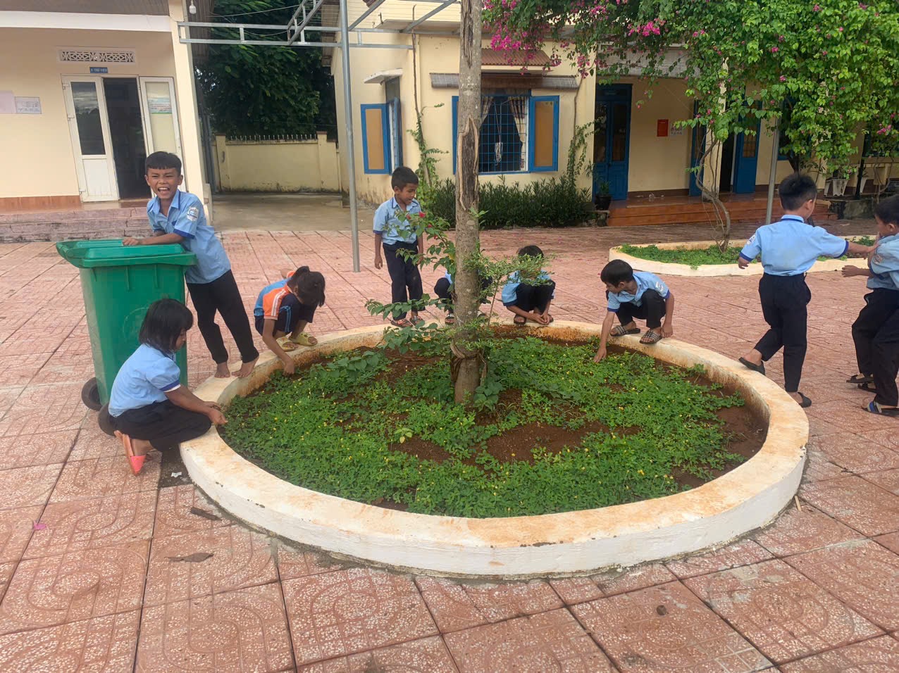 Các em học sinh đều hăng hái, vui tươi, tích cực tham gia, thể hiện tinh thần đoàn kết và ý thức trách nhiệm trong việc xây dựng môi trường học tập “xanh – sạch – đẹp”. Mỗi góc sân, bồn cây, giàn hoa đều trở nên tươi mới, sạch đẹp hơn từng ngày.