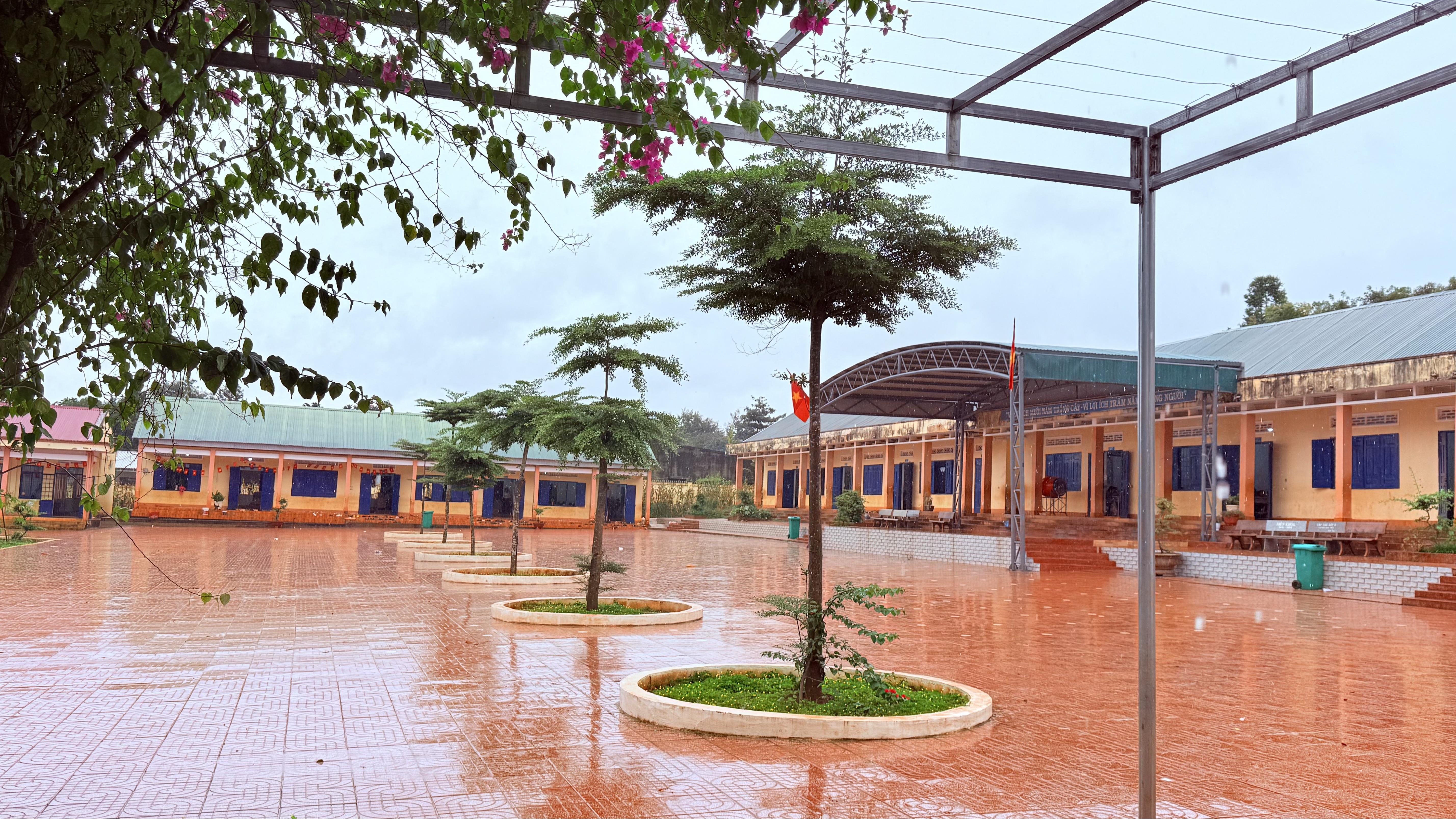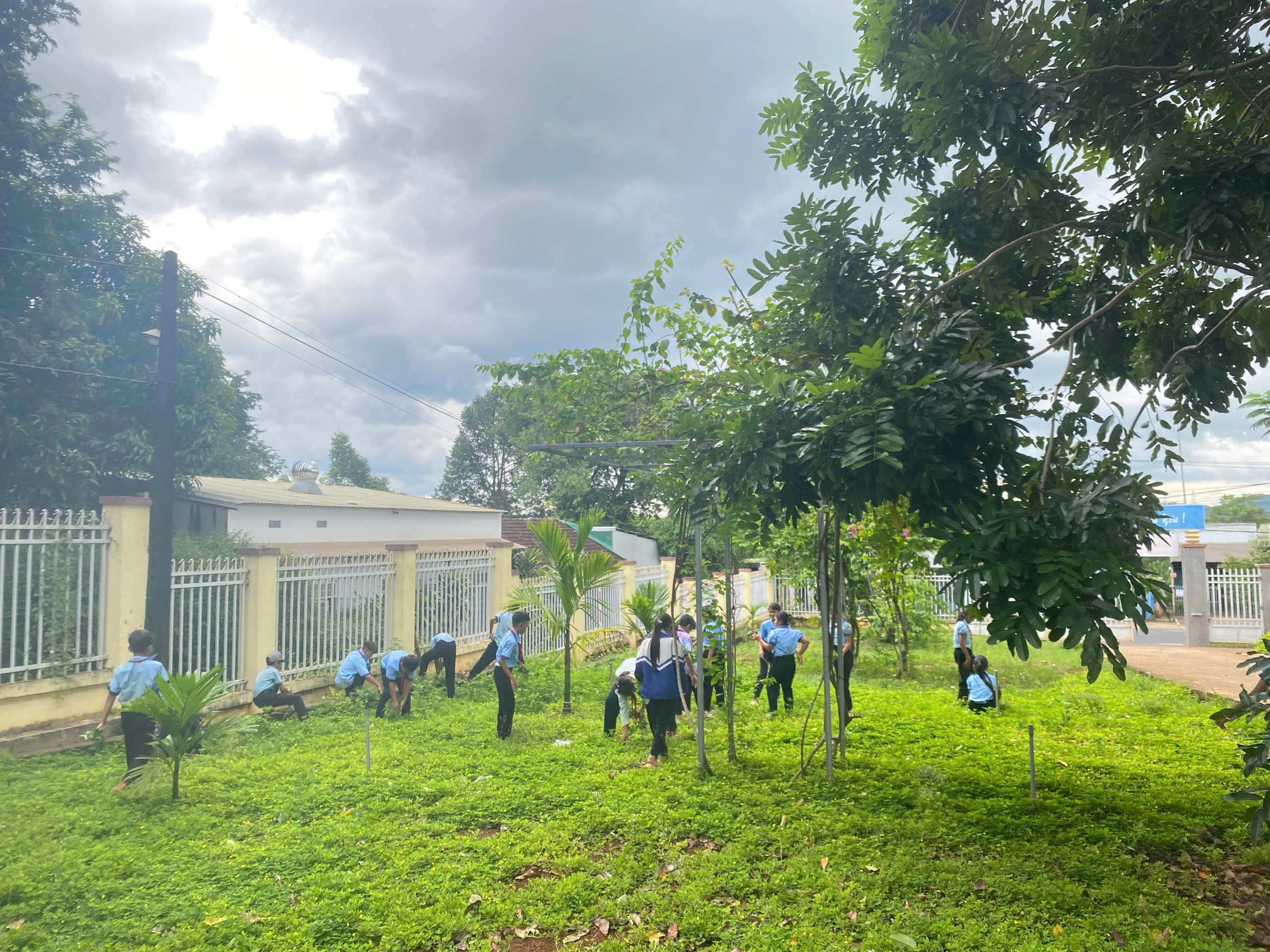 Ngay từ đầu tháng 09/2025, thầy và trò nhà trường đã cùng nhau tổ chức các buổi vệ sinh sân trường, chăm sóc bồn hoa, nhổ cỏ, tỉa cành, tưới nước và trồng thêm các loại hoa như hoa giấy, cỏ lạc,… tại các khu vực trong và ngoài khuôn viên trường.